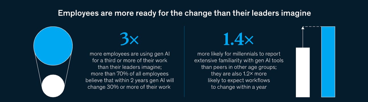 The bottom line: McKinsey’s findings suggest AI won’t automatically transform your workplace. Leaders who invest in people-centric AI strategies—training, open communication, and ethical guidelines—will see the biggest gains.